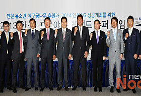 (사진-Nocut news)2013년 11월 29일 인천광역시청에서 열린 양팀 감독과 선수들이 참가한 가운데 인천 유소년 야구꿈나무 후원과 2014 인천아시안게임 성공개최를 위한 '2013 한·일 프로야구 레전드 슈퍼게임' 기자회견이 열렸습니다.한국은 류중일 삼성 감독…